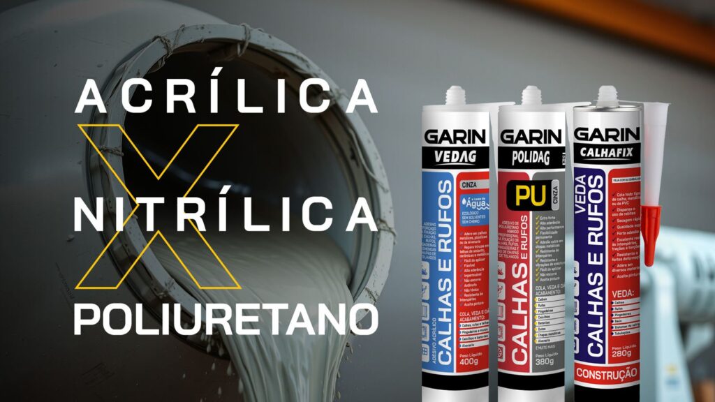 Veda Calha: Diferenças entre o Base d´água (Acrílico), o Solda química (Nitrílico) e PU (Poliuretano).